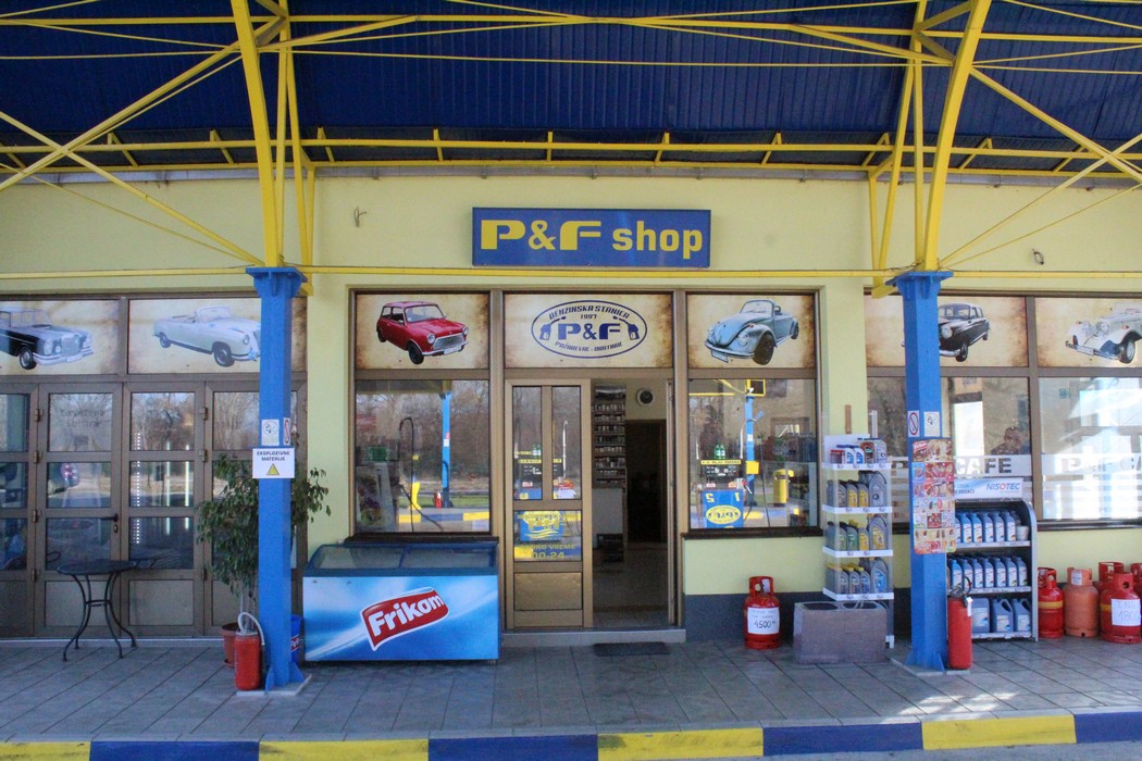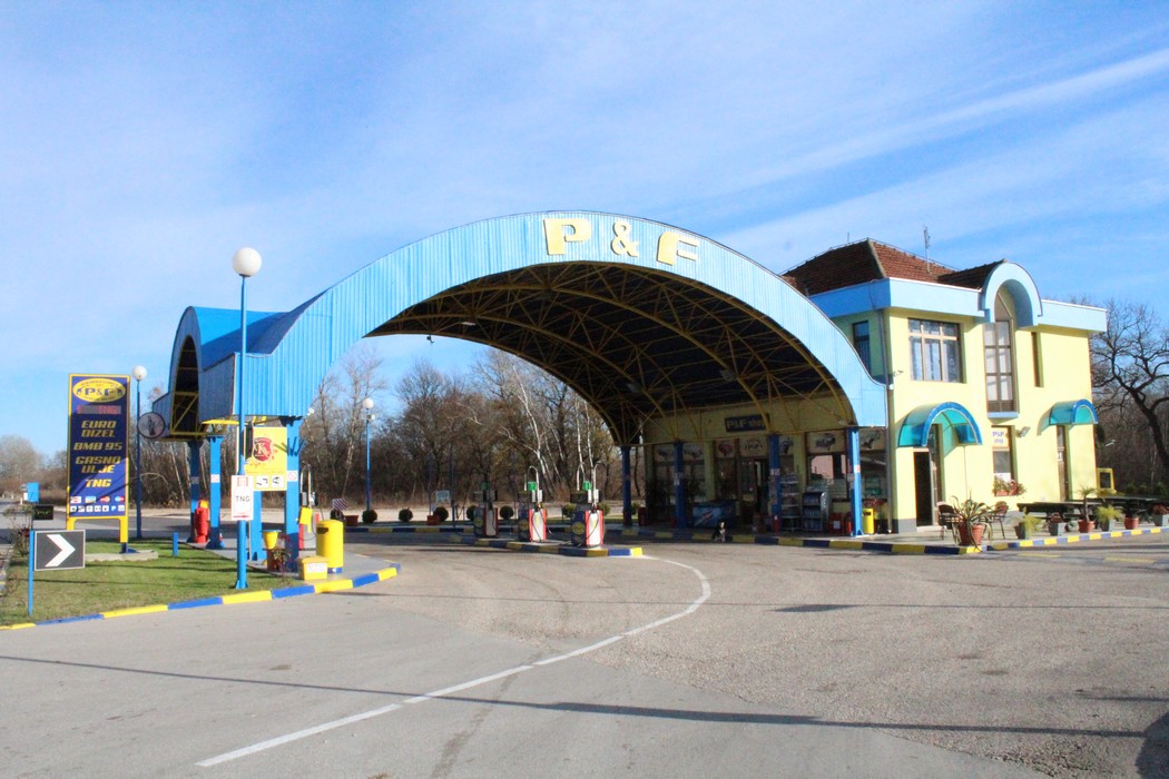 Die Tankstelle „P&F” wurde 1997 auf der Bundesstraße Požarevac-Veliko Gradište erbaut. Das moderne Gebäude im charakteristischen Stil mit 300m² liegt im Tal des Flusses Mlava, in 3km Entfernung von Požarevac. Zur Tankstellen gehört ein Shop, ein Café, Büroflächen und 500m² Parkplätze für Autos und Lastwägen, umgeben von Natur. Das Gebäude verfügt ebenso über Zimmer zur Übernachtung und Erholung nach langen Reisen.